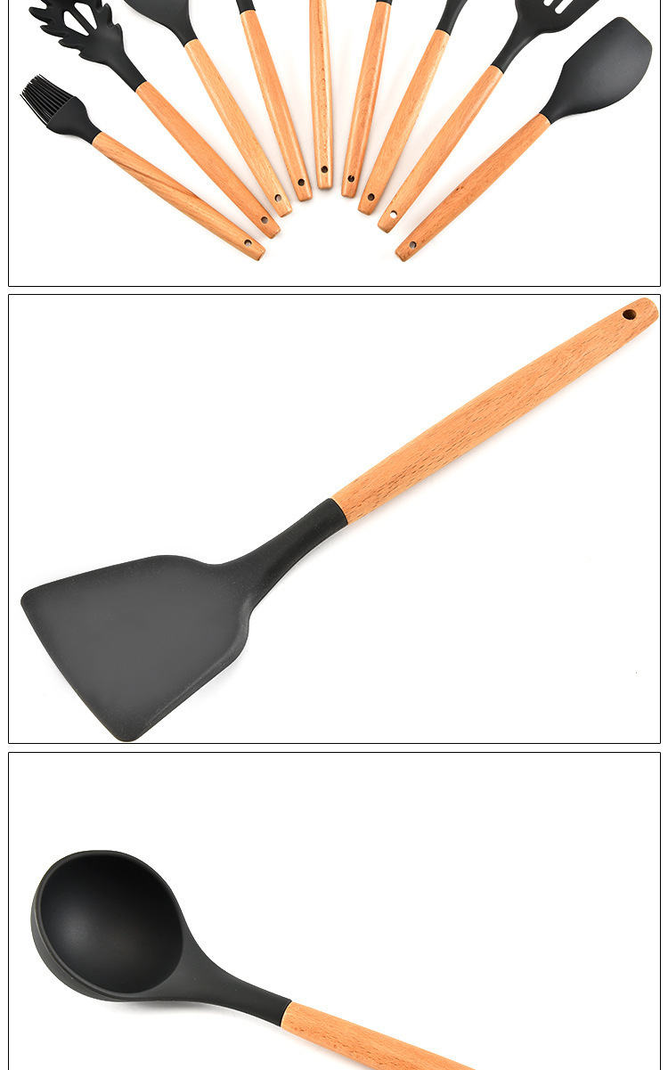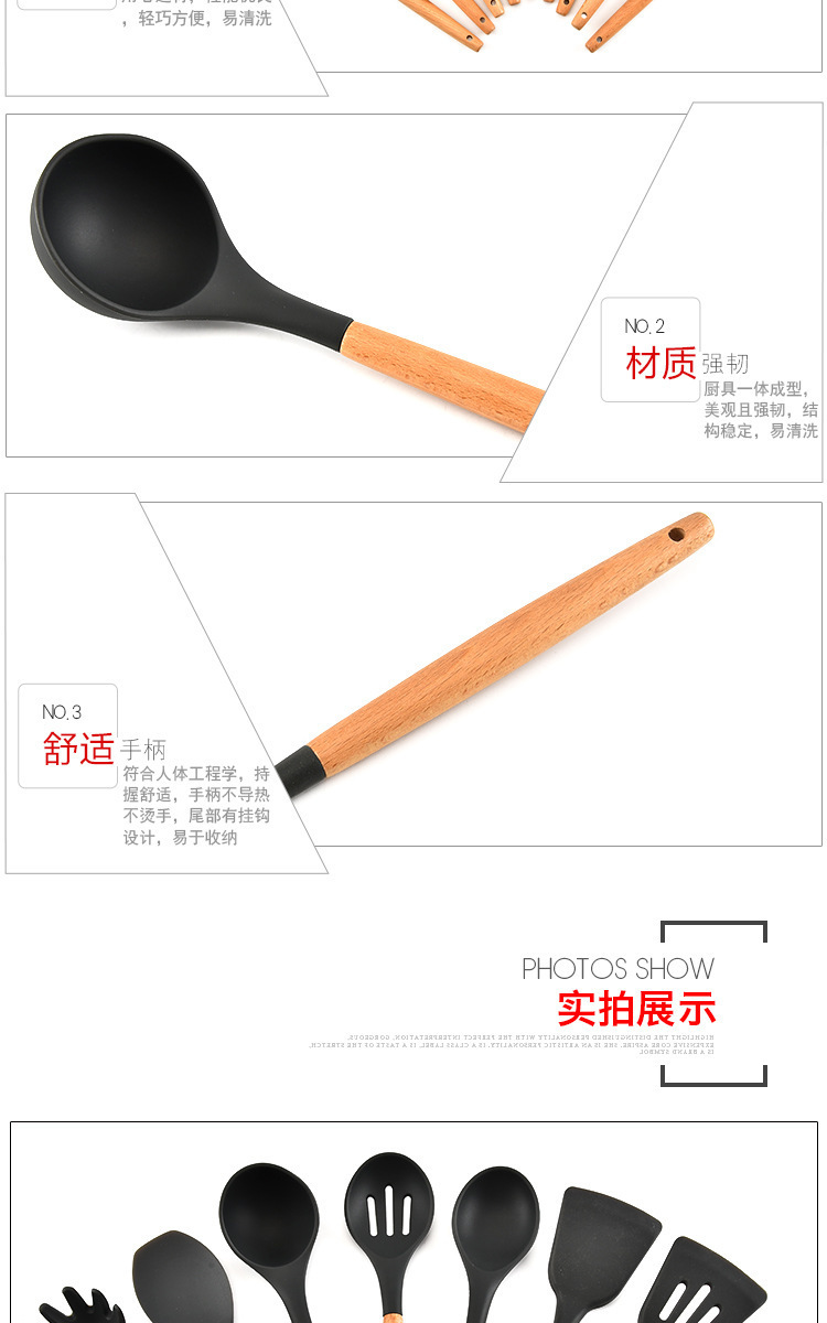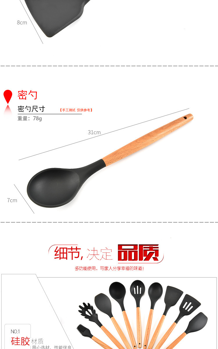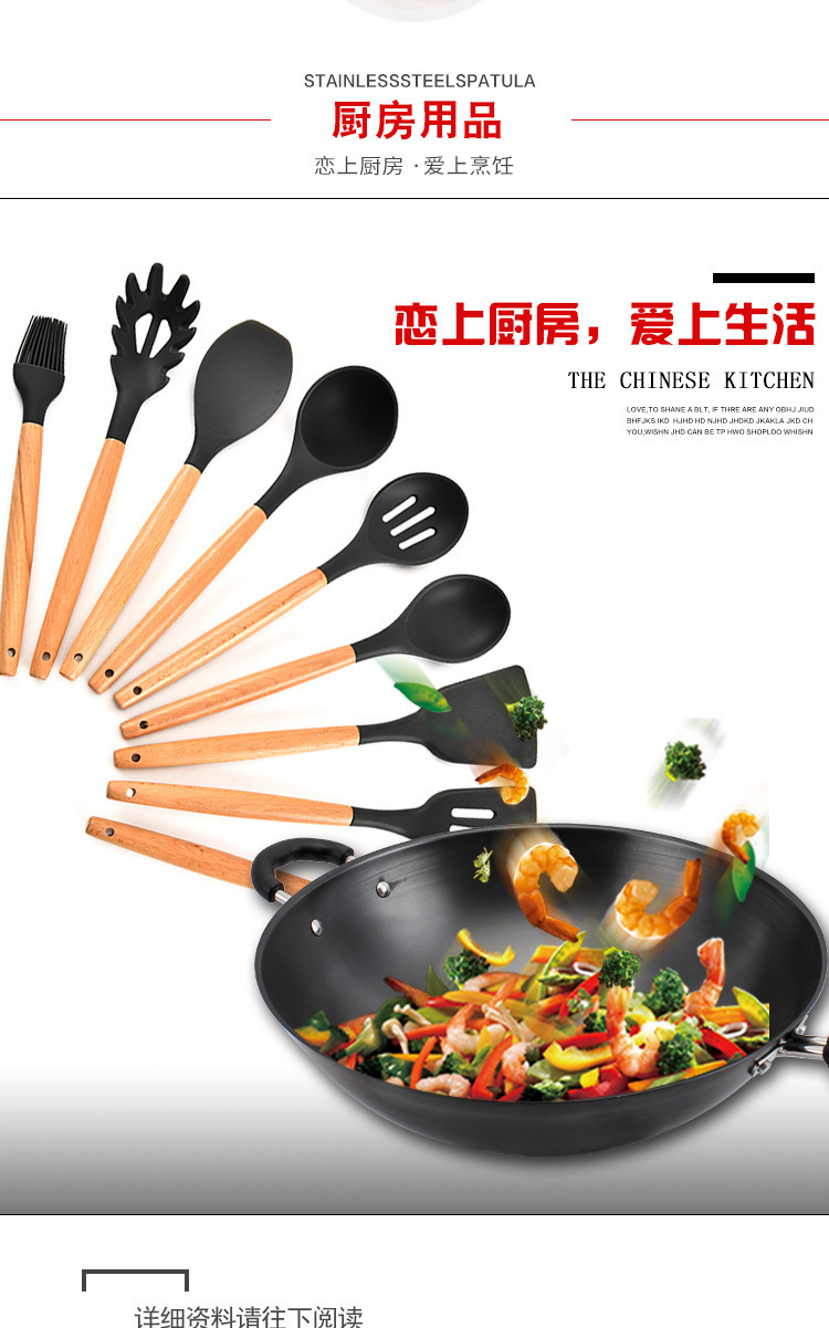 • 名称:木柄9件套硅胶厨具,硅胶厨具九件套木柄