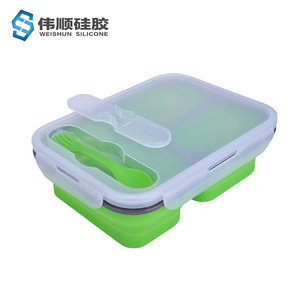- 三格硅胶饭盒,硅胶折叠饭盒,折叠户外保温饭盒