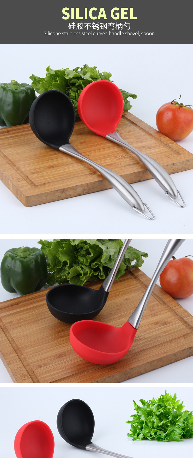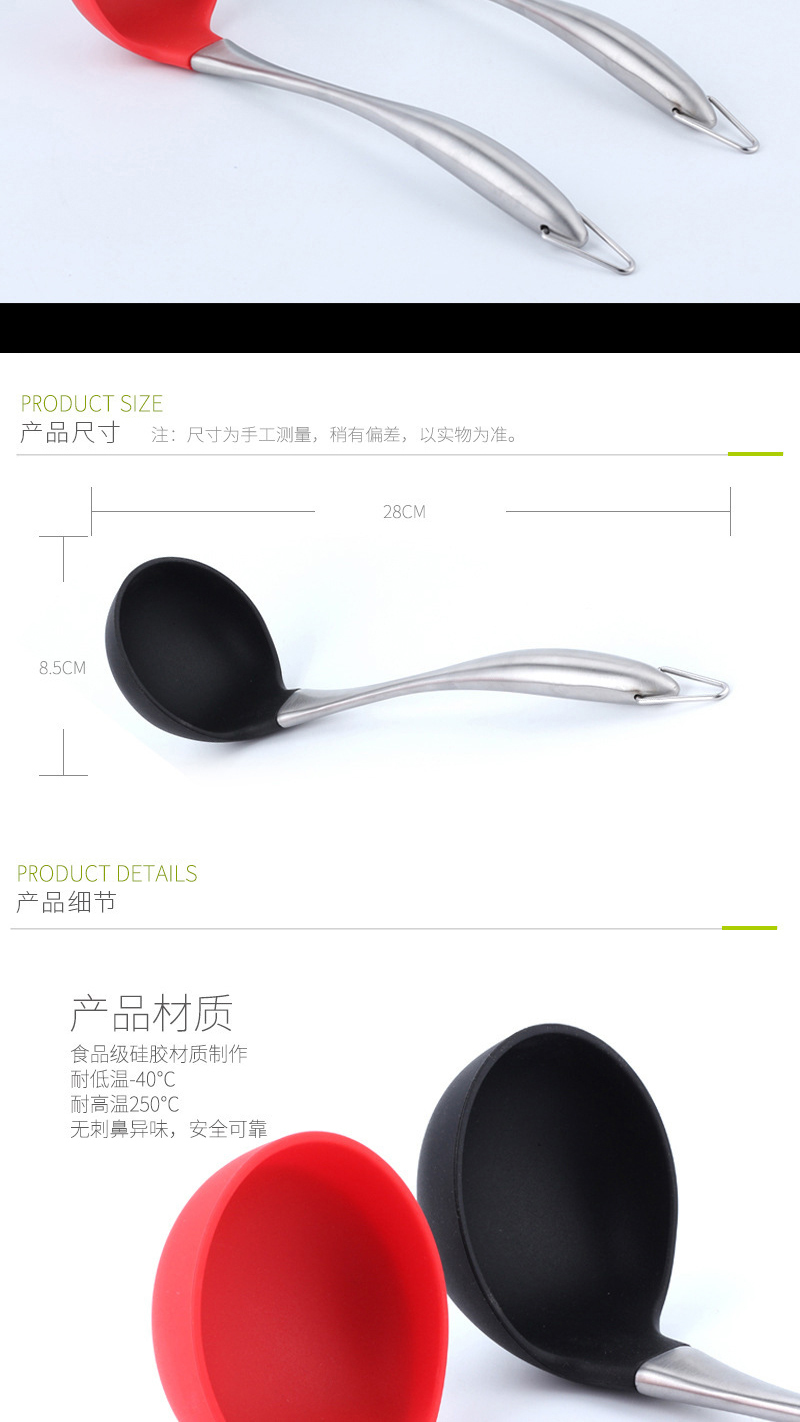产品名称:不锈钢柄硅胶汤勺