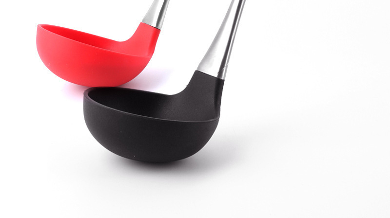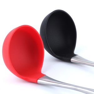 硅胶不锈钢柄汤勺,硅胶不锈钢长柄汤勺,硅胶不锈钢柄大号汤勺