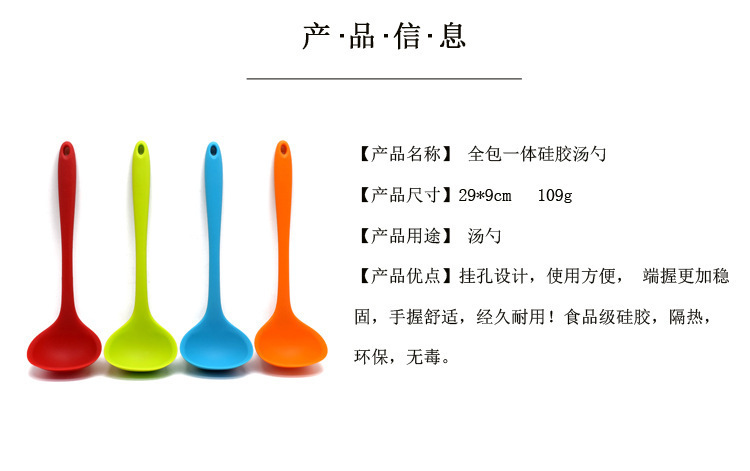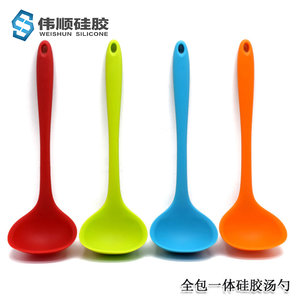 - 全包一体式硅胶汤勺,一体式硅胶长柄汤勺,全包硅胶大号汤勺