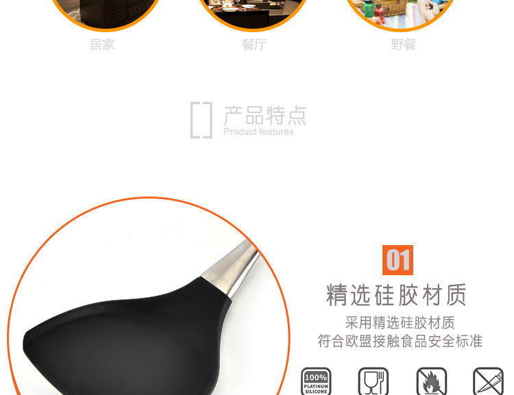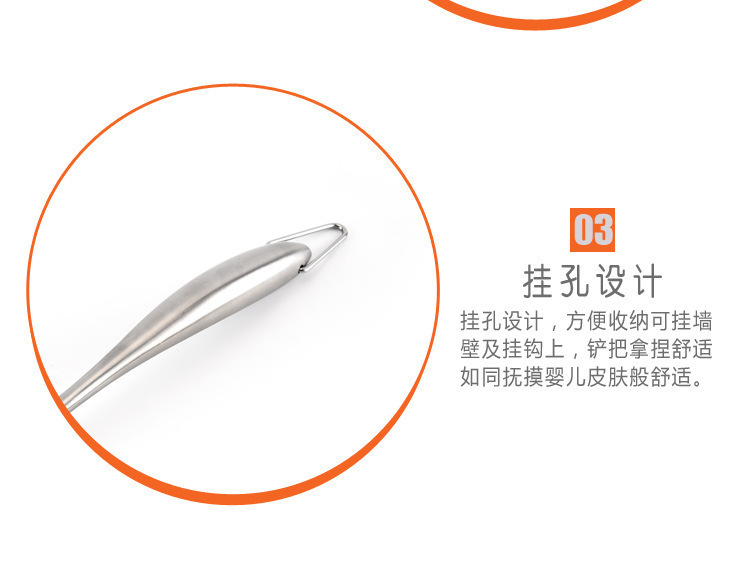 2、手柄采用优质不锈钢制作,流线型的手柄设计,增加了锅铲本事的强度,防滑防烫,握感舒适