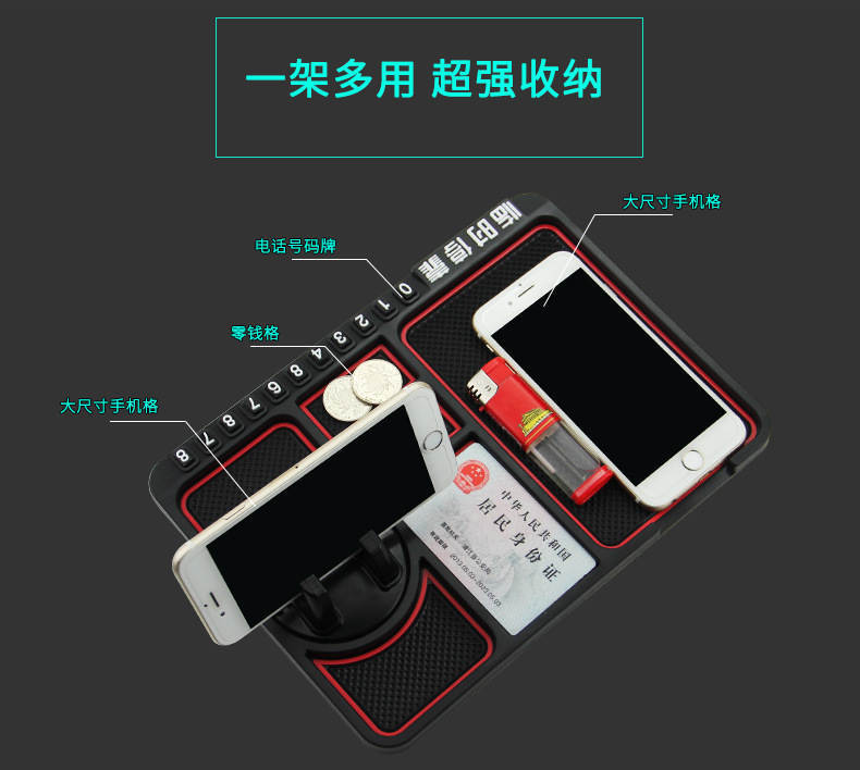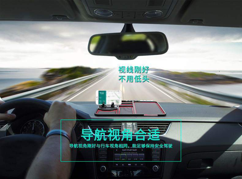 3、当你开车时,可以将手机垂直固定在防滑垫内,方便查看地图。垂直放置时,可以方便的触摸手机屏幕。