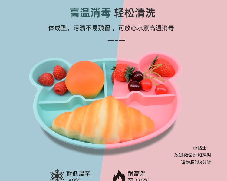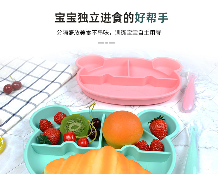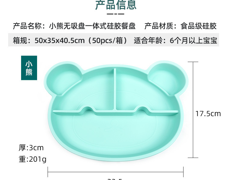 产品名称:小熊硅胶餐盘 一体式儿童可爱卡通餐垫盘 分格辅食环保无气味防摔